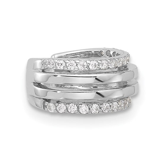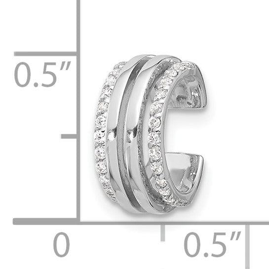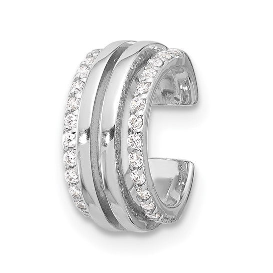 Sterling Silver Rhodium-plated Polished 4 Row CZ Single Cuff Earring