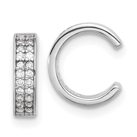 Sterling Silver Rhod-plated Polished Two Row CZ Pair of 2 Cuff Earrings
